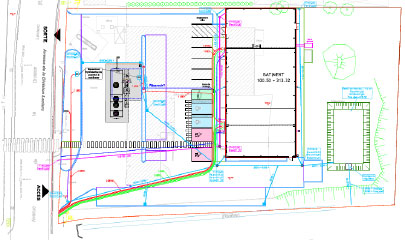 D2molition des bâtiments et évacuation des installations de la chaufferie et station carburant, remise à plat du terrain. Construction de deux cellules commerciales, aménagements extérieurs (chemin piétonnier, accès, stationnement des véhicules et espaces verts)